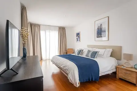On the first floor, there is the master super-king bedroom and two other bedrooms, one with two single beds and the other with a king-size bed. All bedrooms have access to a terrace and air conditioning.